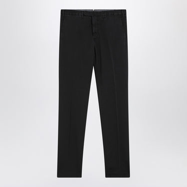 Black cotton Santaniello trousers, featuring belt loops at waist, two side welt pockets, two back welt pockets and front fastening. Size and Fit - Model wears size 46 IT Model measurements: Height: 187 cm Chest: 102 cm Waist: 76 cm Hips: 92 cm