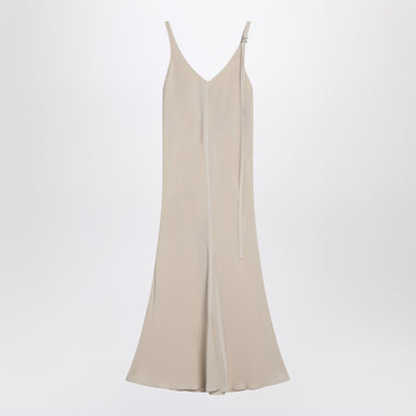 Sportmax dress in ivory viscose, characterized by a front and back V-neckline, adjustable straps with metal loops, and a regular fit. Size and Fit - Model wears size 40 IT Model measurements: Height: 179 cm Chest: 83 cm Waist: 61 cm Hips: 88 cm