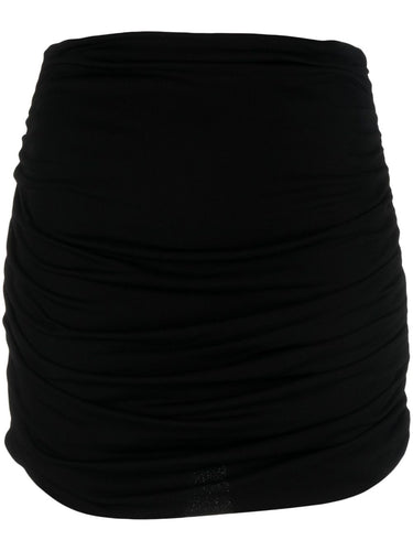 ruched high-waisted mini skirt from TORY BURCH featuring black, stretch-design, ruched detailing, high-waisted and thigh-length. Mini skirt