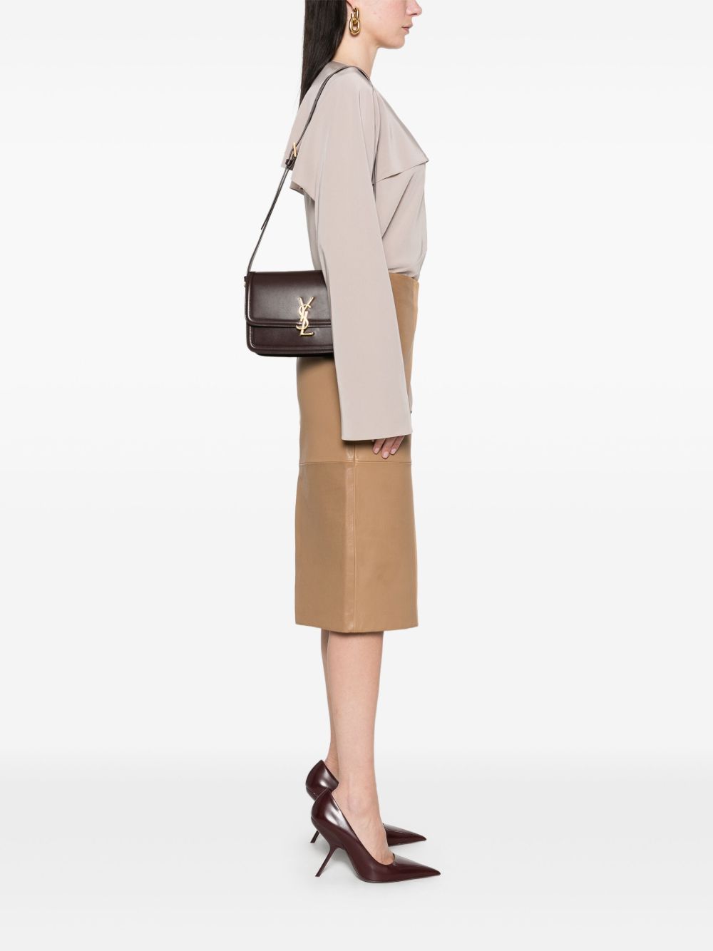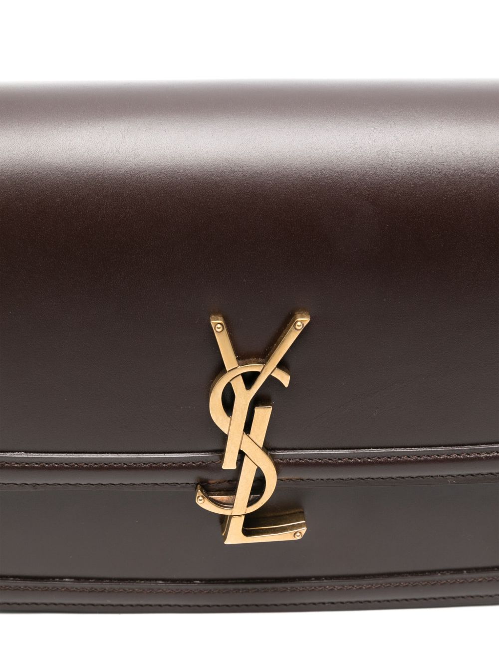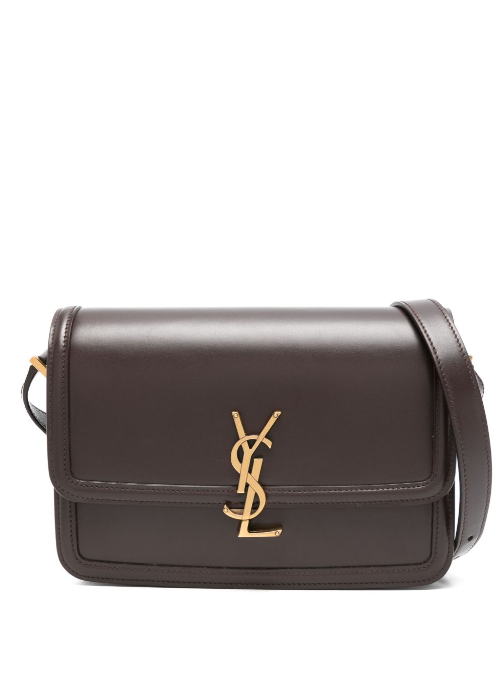 The Solferino Medium Bag is crafted from smooth chocolate brown leather and finished with the iconic Cassandre logo plaque. Designed with a secure snap closure, it features an adjustable shoulder strap for versatile wear and multiple interior pockets for practical organization. A timeless design that blends elegance with everyday functionality.