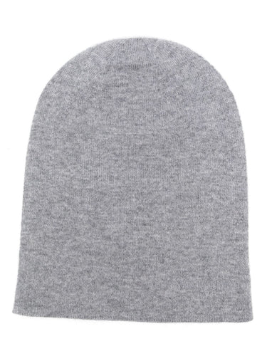 This grey beanie is crafted from soft cashmere with a melange knit texture, featuring a round crown and unlined construction for a lightweight feel. The subtle side logo adds a refined touch to its minimalist design, making it a cozy yet elevated cold-weather essential.