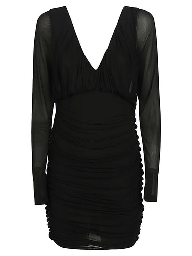 Abito corto a maniche lunghe, ampio scollo a V frontale e sulla schiena, design arricciato. Short jersey dress Size and Fit - This piece fits true to size. We recommend you get your regular size. Model is 1,75m / 5ft 8in wearing size 36 (FR)