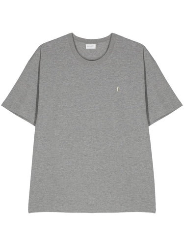 medium grey cotton blend piqué weave mélange effect ribbed crew neck embroidered Cassandre logo at the chest short sleeves straight hem Logo cotton blend t-shirt