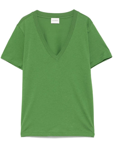 asparagus green plunging V-neck short sleeves Size and Fit - This piece fits true to size. We recommend you get your regular size. Model is 1,75m / 5ft 8in wearing size S