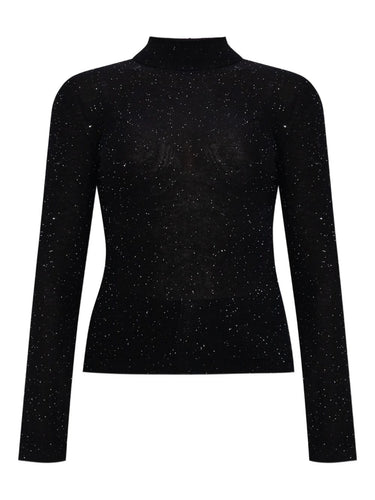 black high neck long sleeves all-over glitter effect Wool turtle-neck sweater