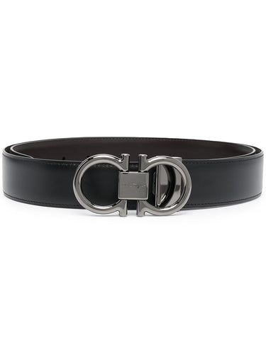 black leather silver-tone hardware Gancini buckle adjustable fit reversible Gancini leather belt