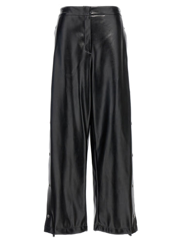 Alter Mat leather-effect fabric trousers, zip and hook closure, elastic waistband, wide leg with button detail that can be opened on the sides. Size and Fit - true to size fit