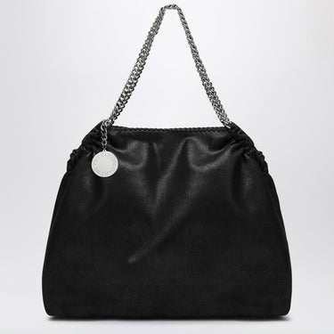 Tote bag by Stella McCartney made of black Shaggy Deer matte vegan fabric with a semi-gloss grain, featuring two chain handles, a magnetic button fastening, a main compartment, an internal zipped pocket and an engraved logo medallion charm. Size and Fit - Width 46,5 cm x Height 317 cm x Depth 17 cm Handle drop: 22 cm