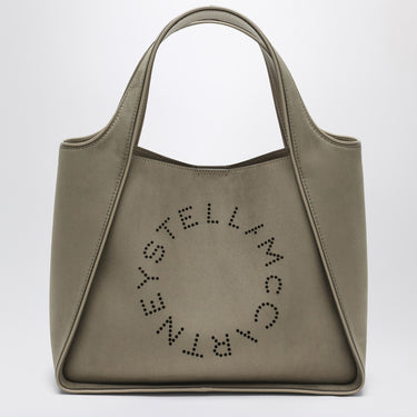 Medium tote bag by Stella McCartney in khaki eco-leather with a vintage effect, featuring a perforated logo detail on the front, a single internal compartment, and an adjustable and removable shoulder strap. Size and Fit - Width 31,5 cm x Height 22 cm x Depth 13 cm Adjustable shoulder strap length min 80 cm - max 100 cm Handle drop: 13 cm