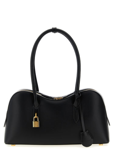 'Ryder' shoulder bag in hammered leather-effect fabric, metal padlock detail and front embossed logo, double fixed handle, top zip closure, canopy hemp lining._x000D_ SUSTAINABLE: Products that do not use leather respecting cruelty-free ethics. Size and Fit - W 36 x H 17.5 x D 10 cm