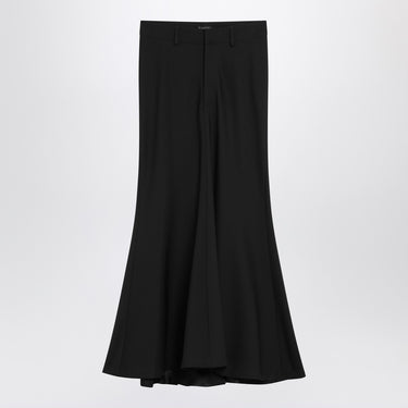 Balenciaga black wool skirt, featuring front closure, belt loops, and flared ankle-length cut. Size and Fit - Model wears size 36 FR Model measurements: Height: 182 cm Chest: 79 cm Waist: 62 cm Hips: 90 cm