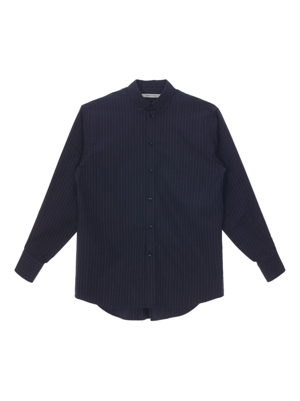 Navy 100% GOTS-certified cotton shirt with a crisp poplin handfeel, tailored long sleeves, and a clean button front. Minimal, refined lines for polished everyday styling—perfect for FW25 – Autumn/Winter 2025.