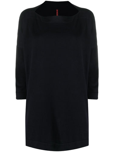 navy cotton knitted construction ribbed detailing tonal stitching boat neck three-quarter length sleeves flared design Cotton boat-neck sweater Size and Fit - This piece fits true to size. We recommend you get your regular size. Model is 1,75m / 5ft 8in wearing size UNI