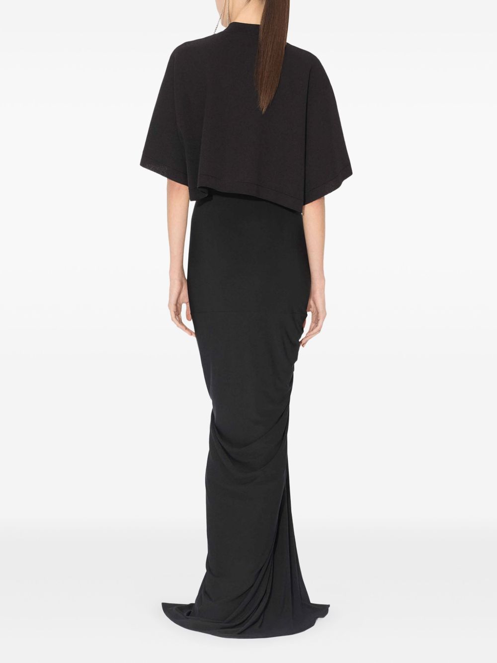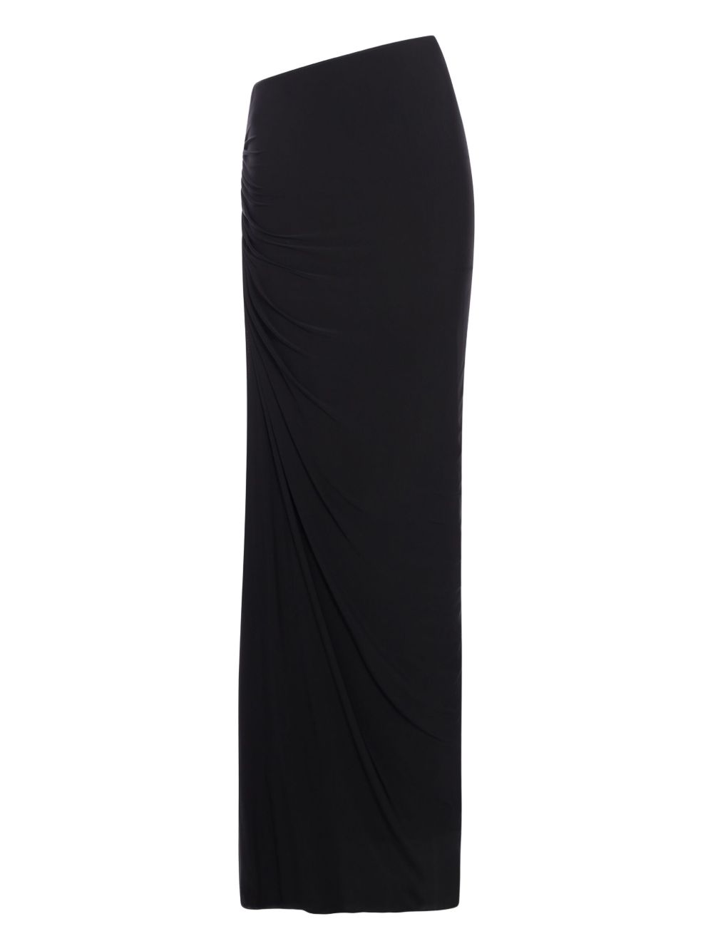 Black long skirt with an elegant draped construction and asymmetric hem. Fluid, sculpted lines create a refined evening-ready silhouette—perfect for FW25 – Autumn/Winter 2025.
