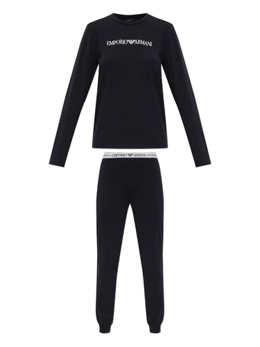 black embroidered logo long sleeves elasticated waistband cuffed bottoms cotton blend
