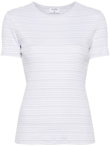 baby blue/white organic cotton fine ribbed horizontal stripe pattern round neck short sleeves straight hem This item is made from at least 50% organic materials. Learn more about what makes a product Conscious on our Conscious Criteria page Striped cotton t-shirt Size and Fit - This piece fits true to size. We recommend you get your regular size. Model is 1,75m / 5ft 8in wearing size S