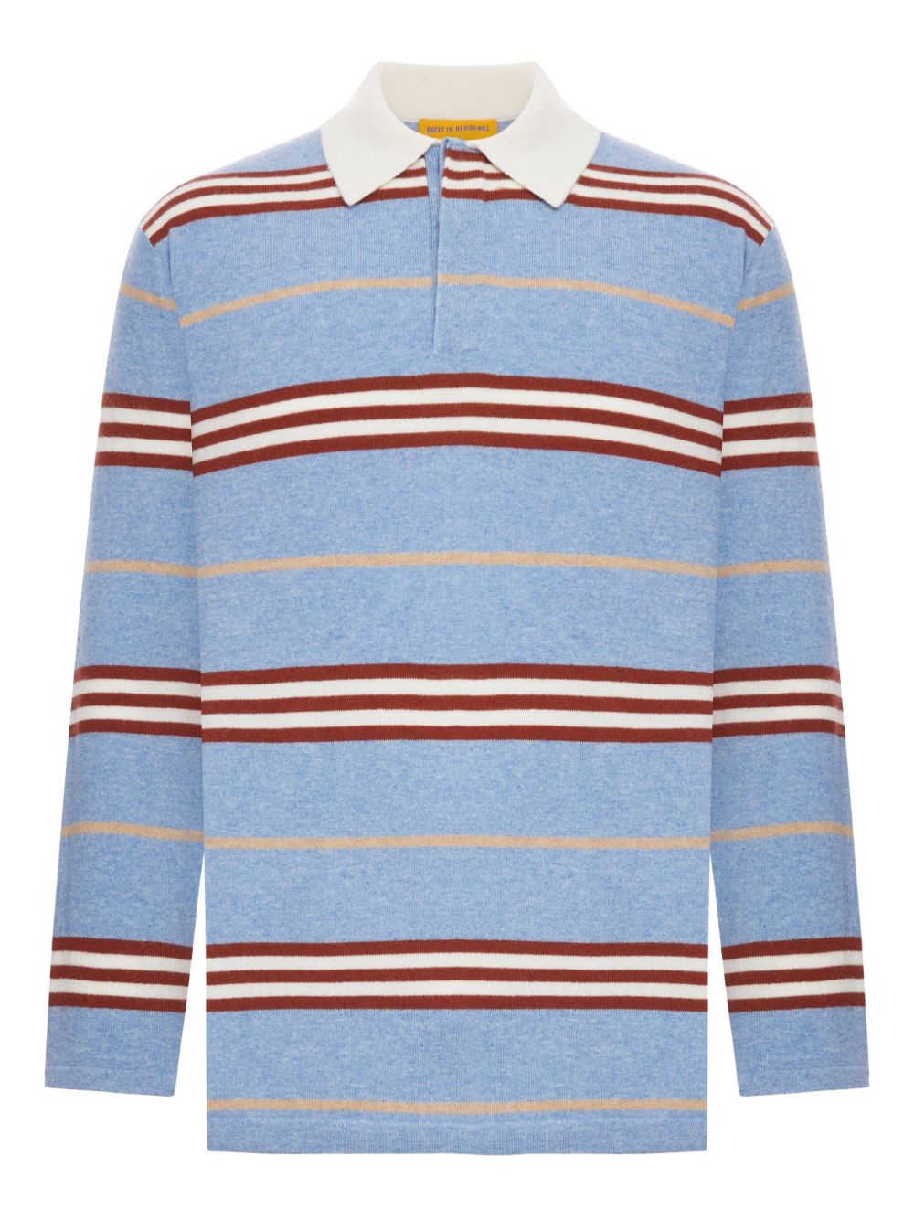 blue horizontal stripes long sleeves polo collar two-button placket cashmere Cashmere striped polo shirt