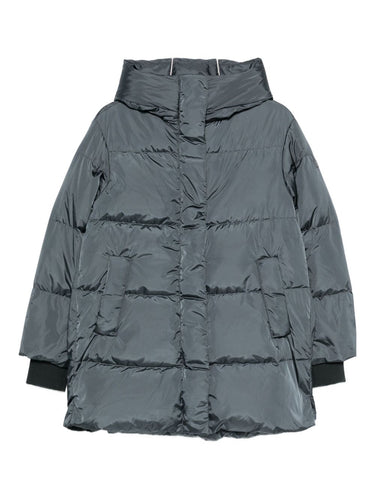 grey funnel neck front press-stud fastening Anu midi down jacket