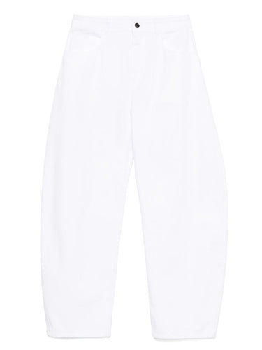 White denim jeans with a low-rise waist and Alaïa’s rounded, sculptural leg. Clean lines and refined construction for a modern everyday silhouette—perfect for FW25 – Autumn/Winter 2025.