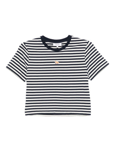 dark navy and parchment white horizontal stripes embroidered Baby-Fox short sleeves crew neck cotton Baby Fox striped cotton t-shirt