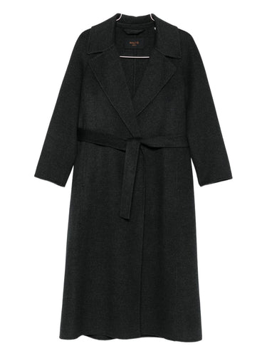 grey wool self-tie belt notched lapel long sleeves straight hem Paola wool coat