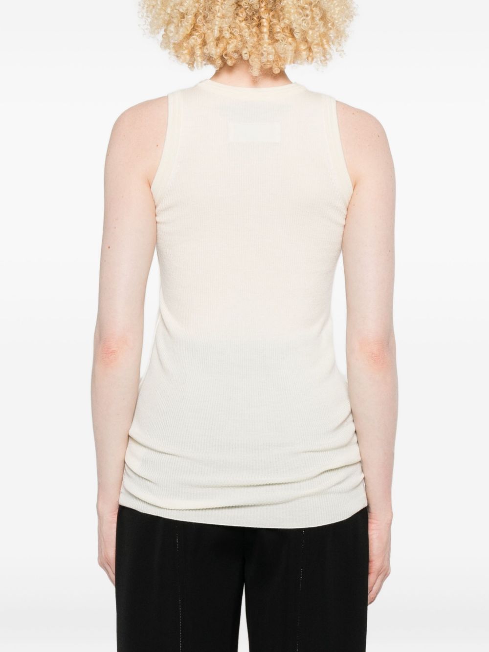 Fine-gauge ribbed wool top with a clean, minimalist silhouette and soft handfeel. A polished layering piece that pairs effortlessly with tailoring or denim.