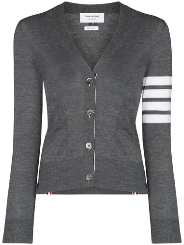 grey wool V-neck front button fastening long sleeves ribbed cuffs 4Bar wool cardigan