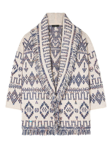 white detachable and adjustable waist belt fringed edge Grunge Beat wool cardigan