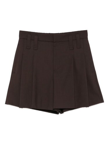 chocolate brown pleated detail high waist button fly Wool blend shorts Size and Fit - This piece fits true to size. We recommend you get your regular size. Model is 1,75m / 5ft 8in wearing size 40 (IT)