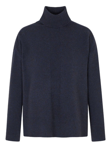dark blue roll neck ribbed knit long sleeves straight hemline Wool turtle-neck sweater