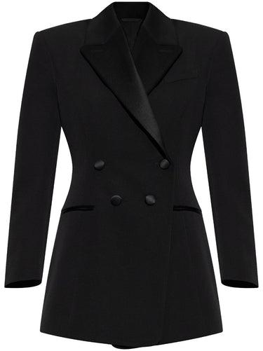 black structured silhouette notch lapels double breasted button closure side pockets long sleeves Wool smoking jacket Size and Fit - This piece fits true to size. We recommend you get your regular size. Model is 1,75m / 5ft 8in wearing size 36 (FR)