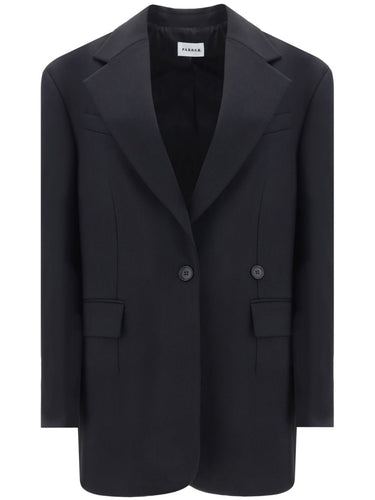 black virgin wool blend peak lapels front button fastening long sleeves buttoned cuffs chest welt pocket two front flap pockets straight hem Wool single-breasted blazer jacket Size and Fit - This piece fits true to size. We recommend you get your regular size. Model is 1,75m / 5ft 8in wearing size S