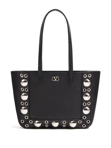 black stud embellishment open top two long top handles Nellcote mini leather tote bag Size and Fit - DEPTH: 5.0 Centimetres. HEIGHT: 16.0 Centimetres. WIDTH: 21.0 Centimetres.