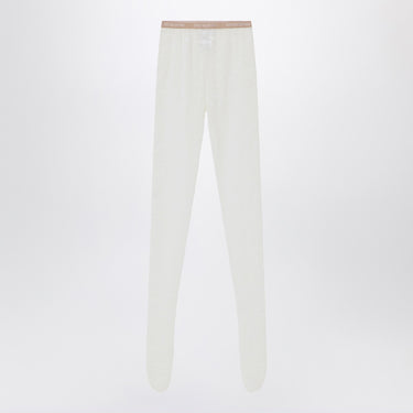 Valentino lace tights in ivory, featuring a contrasting Chez Valentino logo elastic waistband.