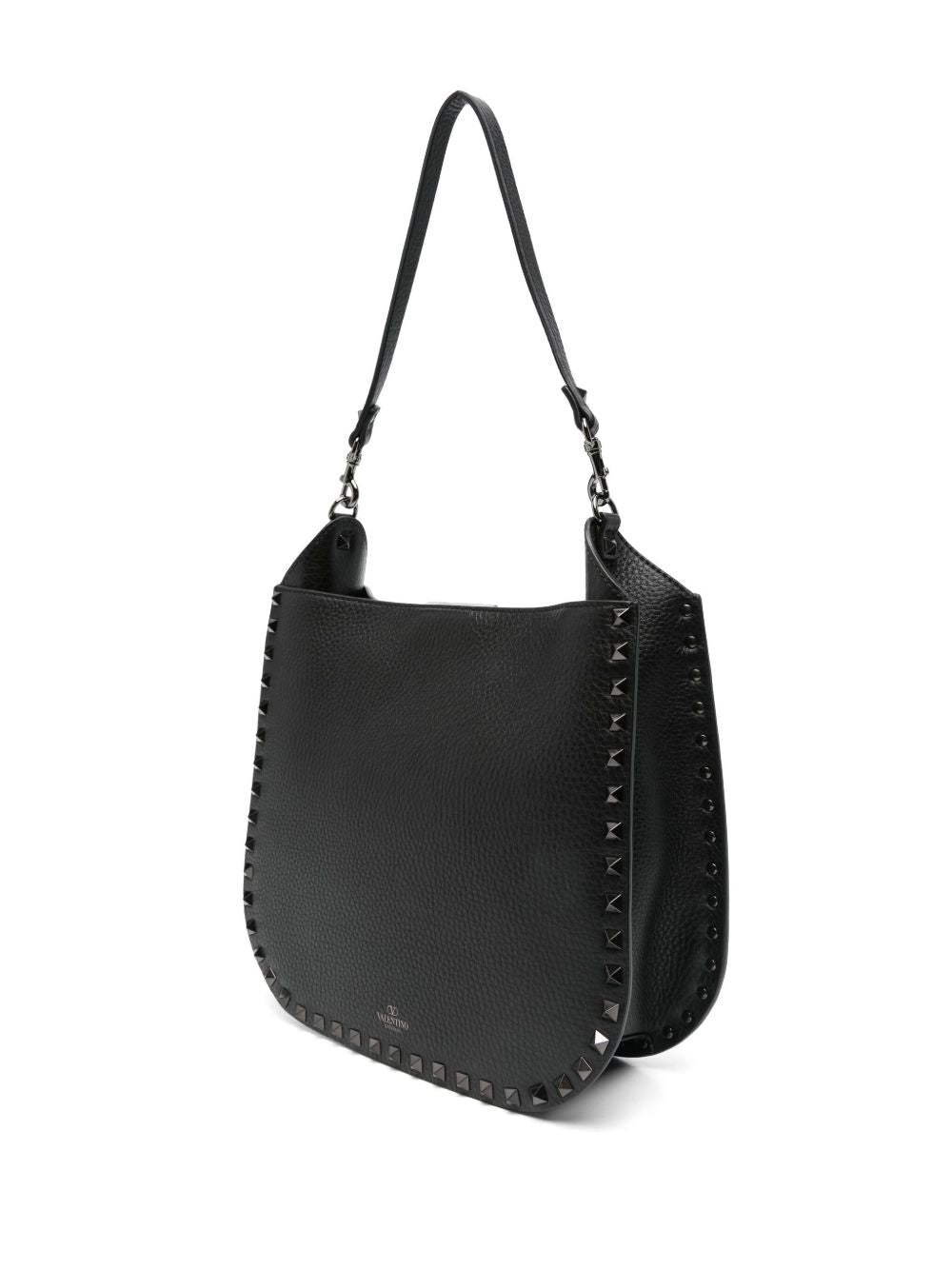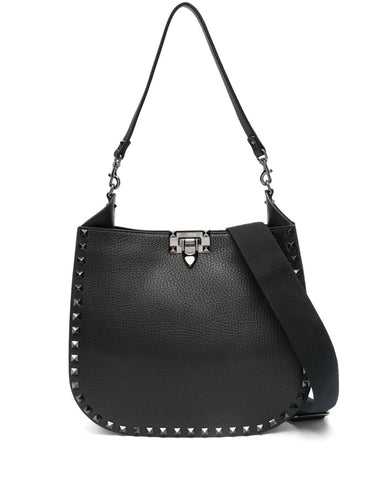 black clasp fastening single detachable top handle detachable braided shoulder strap This piece comes complete with a protective dust bag. Rockstud leather hobo bag Size and Fit - Width 10,63 in / 27 cm Height 8,66 in / 22 cm Depth 3,15 in / 8 cm Handle 16,93 in / 43 cm Strap 39,37 in / 100 cm