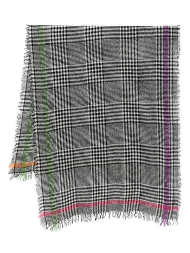 grey plaid pattern frayed edges wool Multi Prince wool and cashmere scarf Size and Fit - LENGTH: 195.0 Centimetres. WIDTH: 75.0 Centimetres.