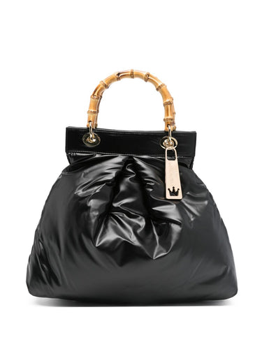 black quilted effect bamboo top-handle gold-tone hardware logo detail padded effect Martina handbag Size and Fit - DEPTH: 10.0 Centimetres. HEIGHT: 35.0 Centimetres. WIDTH: 35.0 Centimetres. HANDLE: 10.0 Centimetres.