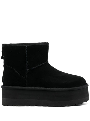 Black, suede, logo patch on the back, stitching detail, logo tab on the heel, round toe. Classic Mini Platform boots Size and Fit - Heel 2,4 in / 6 cm Platform 2,2 in / 5,5 cm