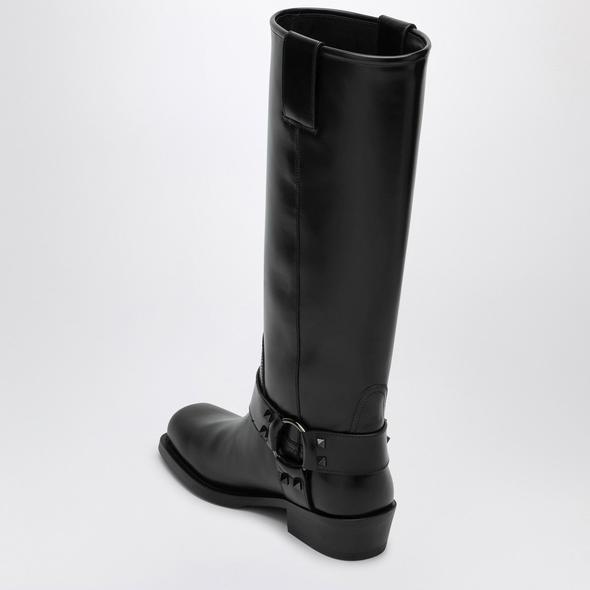 Valentino Garavani Valentino Garavani Black leather Biker Rockstud high boot