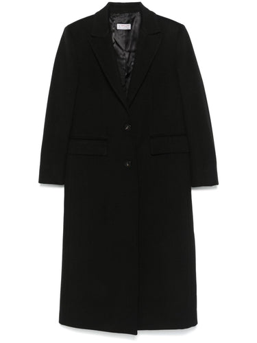 black virgin wool front button fastening peak lapels shoulder pads long sleeves buttoned cuffs chest welt pocket two side flap pockets central rear vent logo-jacquard lining straight hem mid-length Wool single-breasted coat Size and Fit - This piece fits true to size. We recommend you get your regular size. Model is 1,75m / 5ft 8in wearing size 40 (IT)