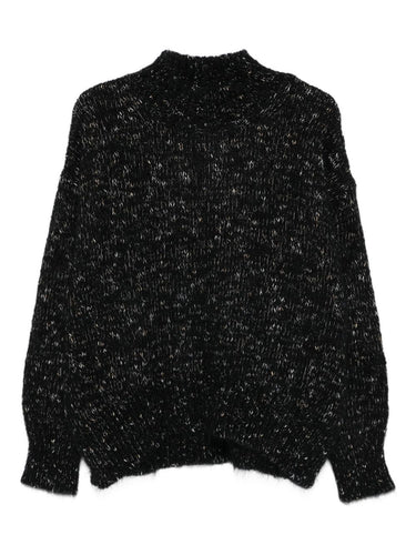 black, high neck, long sleeves, ribbed cuffs. Turtle-neck sweater
