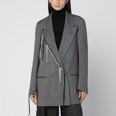 Dries Van Noten Dries Van Noten Grey double-breasted jacket with embroidered stitch decorations