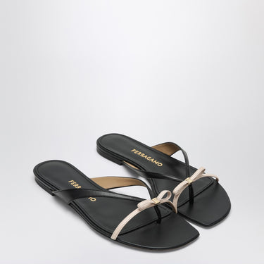 Ferragamo Ferragamo Mini Bow flip-flop black and powdery / narrow fit