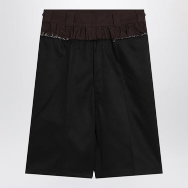 Bermuda shorts by Maison Margiela in black and brown chinos, characterized by a high waist, front pleats, a raw edge stitching detail below the waist, a side closure, and four points on the back. Size and Fit - Model wears size 40 IT Model measurements: Height: 180 cm Chest: 85 cm Waist: 66 cm Hips: 89 cm