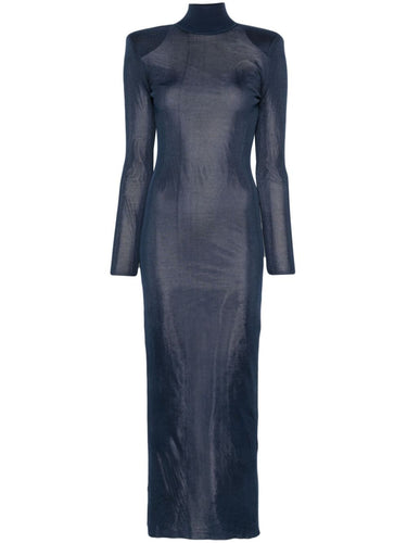 navy blue shoulder pads mock neck long sleeves Knitted maxi dress Size and Fit - This piece fits true to size. We recommend you get your regular size. Model is 1,75m / 5ft 8in wearing size S