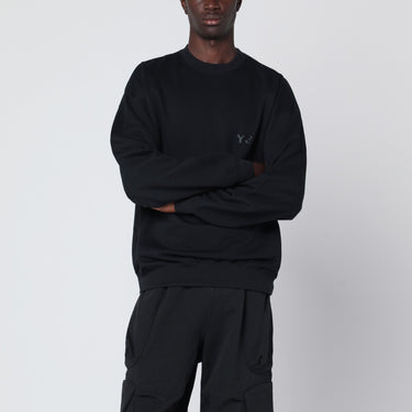 Adidas Y-3 black cotton blend crew neck sweatshirt, featuring long sleeves, ribbed edges, and a tone-on-tone logo print on the chest. Size and Fit - Model wears size S Model measurements: Height: 187 cm Chest: 102 cm Waist: 76 cm Hips: 92 cm