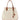 light beige tie-top fastening two rolled top handles main compartment embossed logo to the front Script medium canvas tote Size and Fit - DEPTH: 15.5 Centimetres. HEIGHT: 30.0 Centimetres. WIDTH: 50.0 Centimetres.