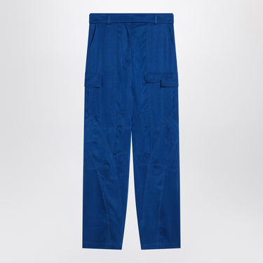Ferragamo cargo pants in electric blue Lyocell, characterized by a front closure, belt loops at the waist, two side welt pockets, two cargo pockets with flap, and two back welt pockets. Size and Fit - Model wears size 40 IT Model measurements: Height: 179 cm Chest: 83 cm Waist: 61 cm Hips: 88 cm