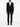 black virgin wool Blazer: notched lapels shoulder pads long sleeves faux buttoned cuffs chest welt pocket two front flap pockets English rear vents multiple internal slip pockets full lining front button fastening Trousers: belt loops pressed crease two diagonal pockets to the sides two rear button-fastening jetted pockets concealed front button, hook and zip fastening Wool single-breasted suit