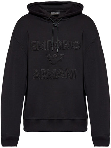 black appliqué logo slouchy drawstring hood long sleeves Logo cotton hoodie Size and Fit - This piece fits true to size. We recommend you get your regular size. Model is 1,84m / 6ft 1in wearing size M